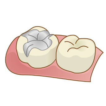 いわゆる「銀歯」と呼ばれるものですが、実際には銀だけでなく金・パラジウム・銅など様々な種類の金属を混ぜた合金が使用されています。